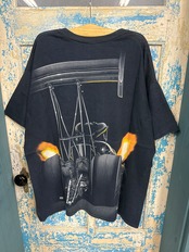 両面に大きなプリントが施されたGILDANの黒Tシャツです。
